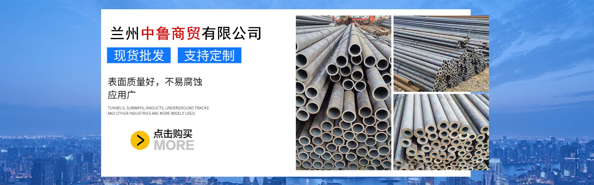 蘭州中魯商貿有限公司位于甘肅省蘭州市七里河區,優越的位置,便利的交通條件,是一家專業鋼材批發零售企業。公司主要經營攀鋼、寶鋼、包鋼、鞍鋼、天鋼生產的無縫鋼管;酒鋼、八鋼、石鋼生產的螺紋、線材、板材;安陽、包鋼、鞍鋼、邯鋼、唐鋼、萊鋼、日鋼所生產的角鋼、槽鋼、工字鋼、H型鋼及鋼軌等高質量高標準的產品。為客戶提供充足的貨源,滿足客戶多樣化需求,卓越,高效,全心是我們服務客戶的宗旨。多年以來始終如一,我們堅持為客戶考慮,為客戶解憂的服務理念,構建了專業完整的服務體系,形成了強大、新型的物流模式?,F已形成已甘肅為核心,輻射陜、甘、寧、青、新、藏、乃至全國的區域化專業化銷售服務網絡。 以優質的貨物資源,全面的物流網絡,完善的服務體系,為客戶提供便捷、高效的服務體驗。憑借強大的綜合實力,我們多次服務于大型工程建設項目。我們始終秉承:質量是立身之本,信譽是發展之路,創新是基業磐石的經營理念。我們嚴格把控